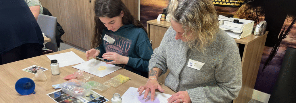 The young people shared their stories with the group and then the Child Bereavement Support Workers led them through ways to look after themselves and safely express their grief. The parents and carers also discussed their coping strategies. They were encouraged to think of healthy ways to look after themselves. The families then came back together and created memory jars.